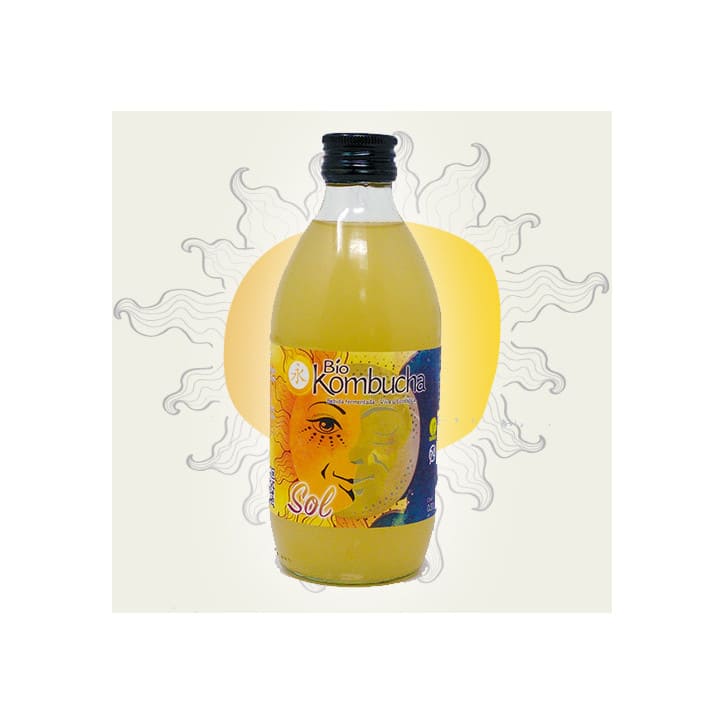 • Bio Kombucha Sol: ligeramente efervescente (CO₂), color amarillo anaranjado.